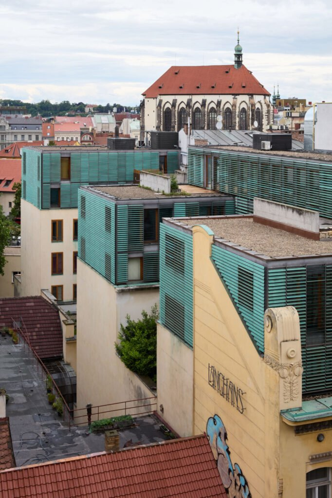 Devadesátá léta byla pro Prahu obdobím prudkých proměn. Otřesený starým režimem a okouzlený možnostmi nové svobody se prostor města začal formovat podle jiných pravidel. Architektura této doby byla stejně rozporná jako sama doba: na jedné straně střízlivý racionalismus inspirovaný meziválečnou modernou, na druhé straně barevná a tvarem neklidná postmoderna, kterou si Češi přivezli ze Západu.
