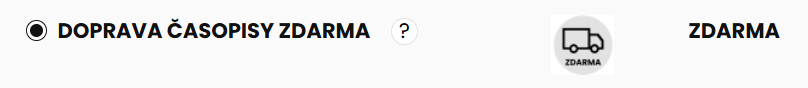 * Tento způsob dopravy je možné využít pouze pro produkty z kategorie "časopisy" pro doručení po České republice. Časopisy není možné v jedné objednávce kombinovat s dalšími produkty. Pro nákup dalších produktů prosím vytvořte samostatnou objednávku a vyberte způsob dopravy.